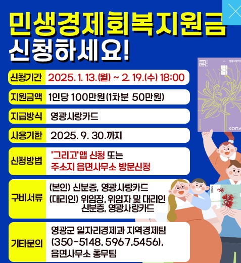 영광군 민생경제회복지원금 신청 방법 및 기간
